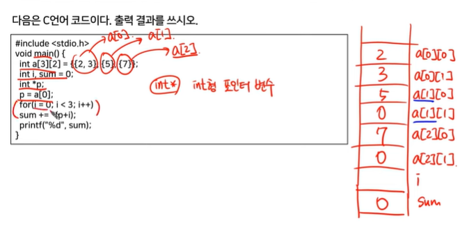 p = a[0] 이라고 기선언했으므로, sum += *(a[0]+i) 과 같음